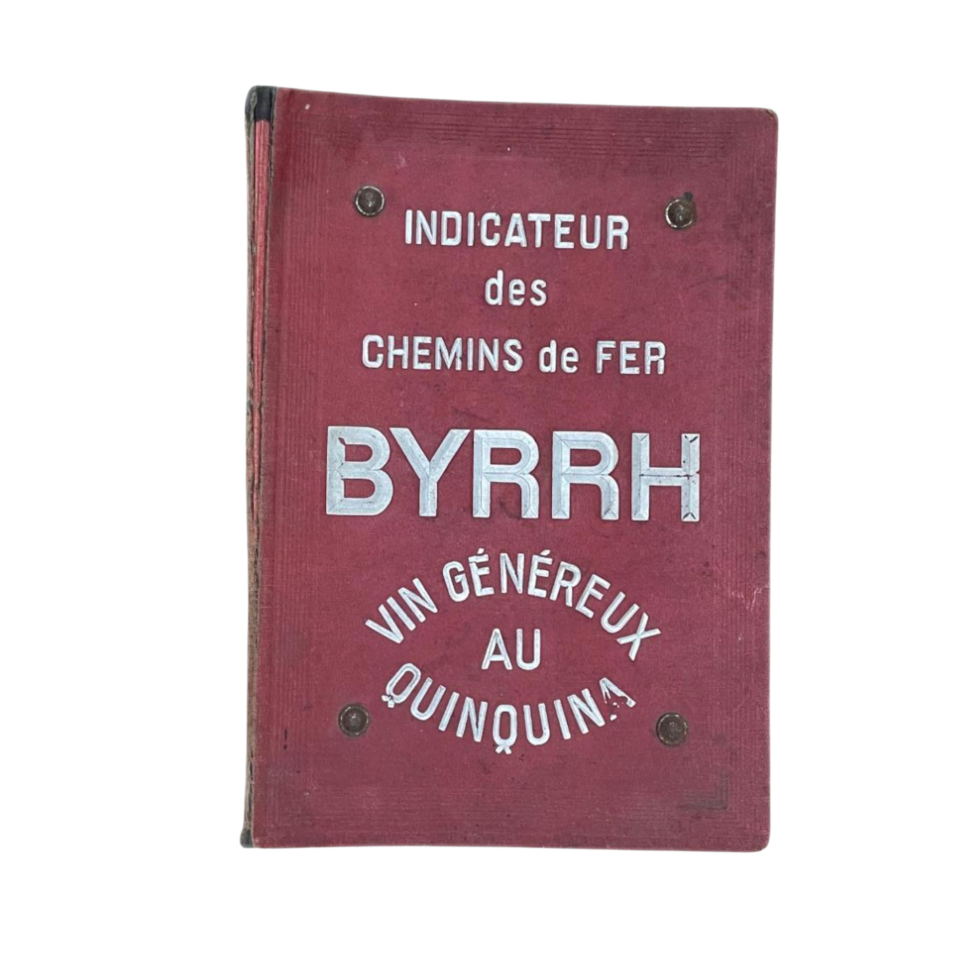 Ancien porte menu publicitaire Byrrh, indicateur des chemins de fer.
