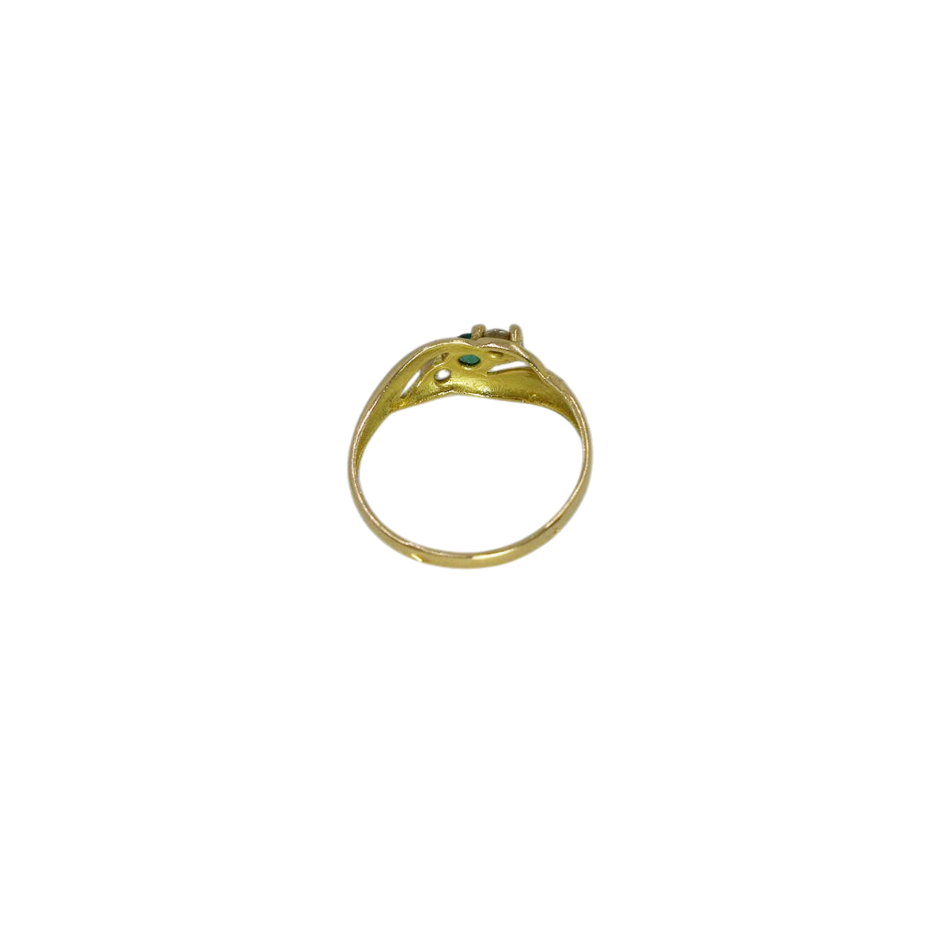 Bague en or jaune, sertie d’une émeraude et de deux brillants.
