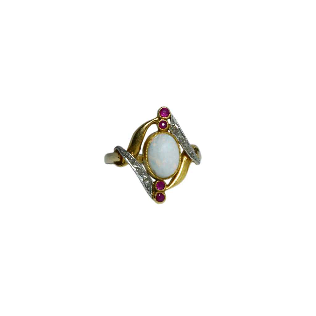 Bague or 750 Opale, Grenats, Brillants