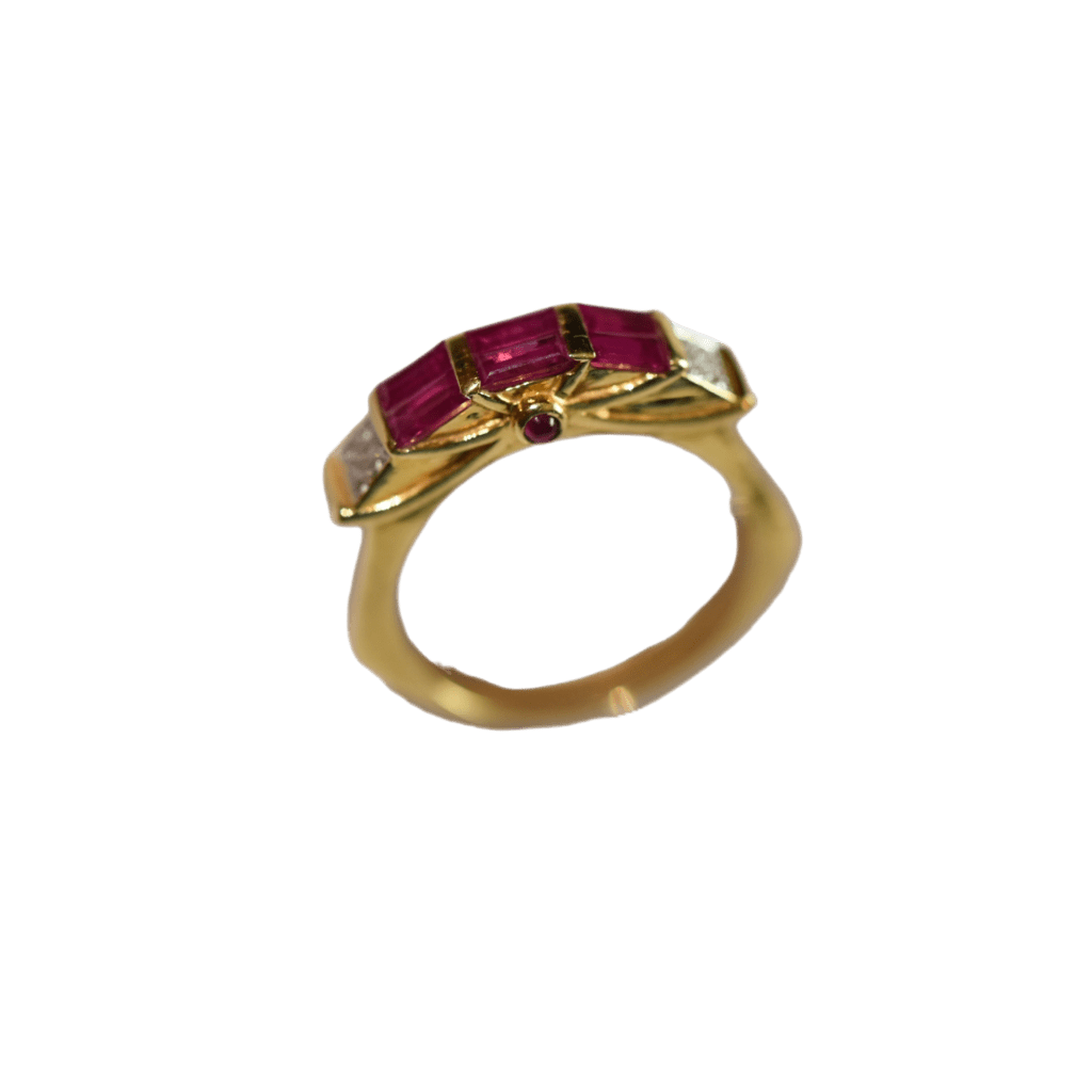 Bague or jaune rubis et diamants