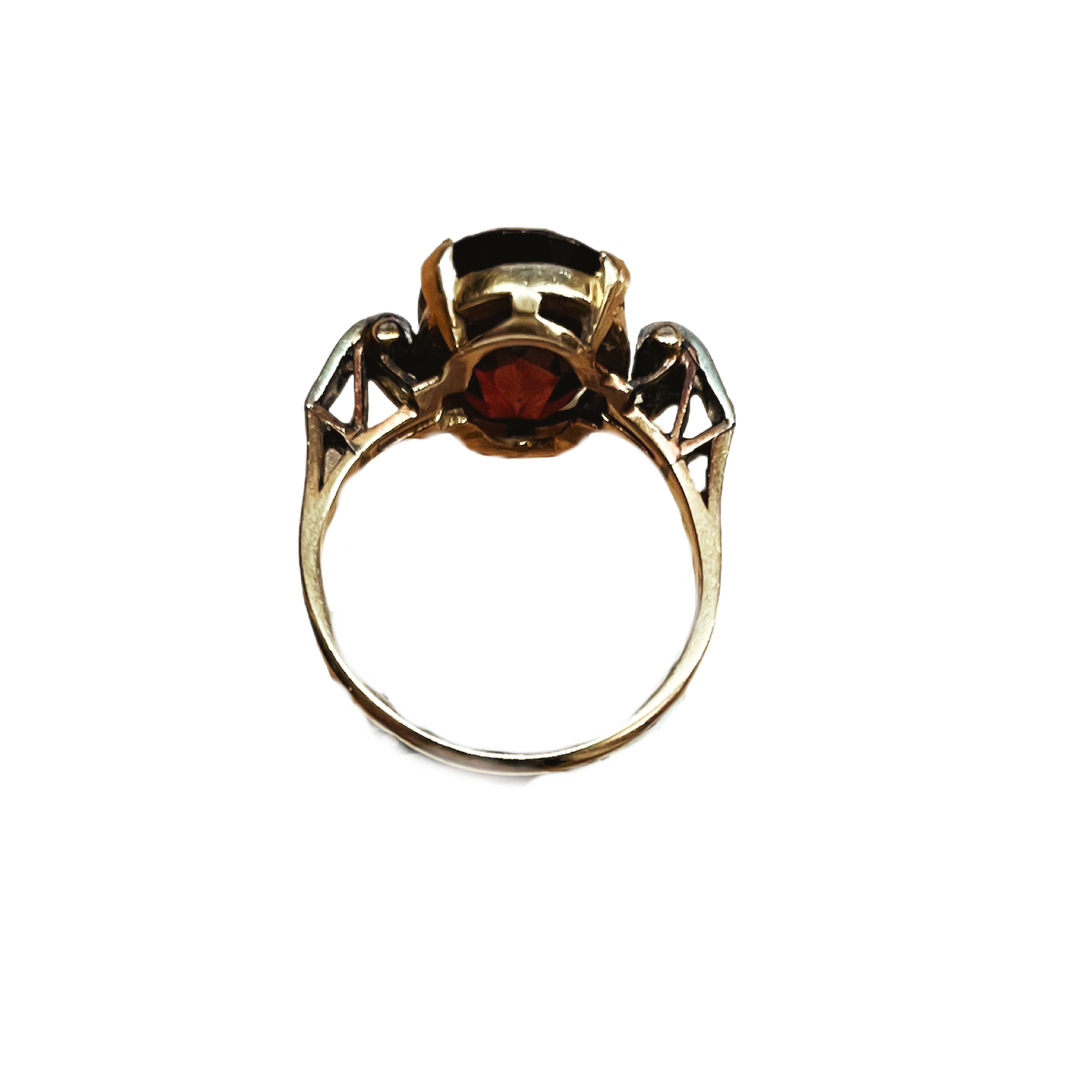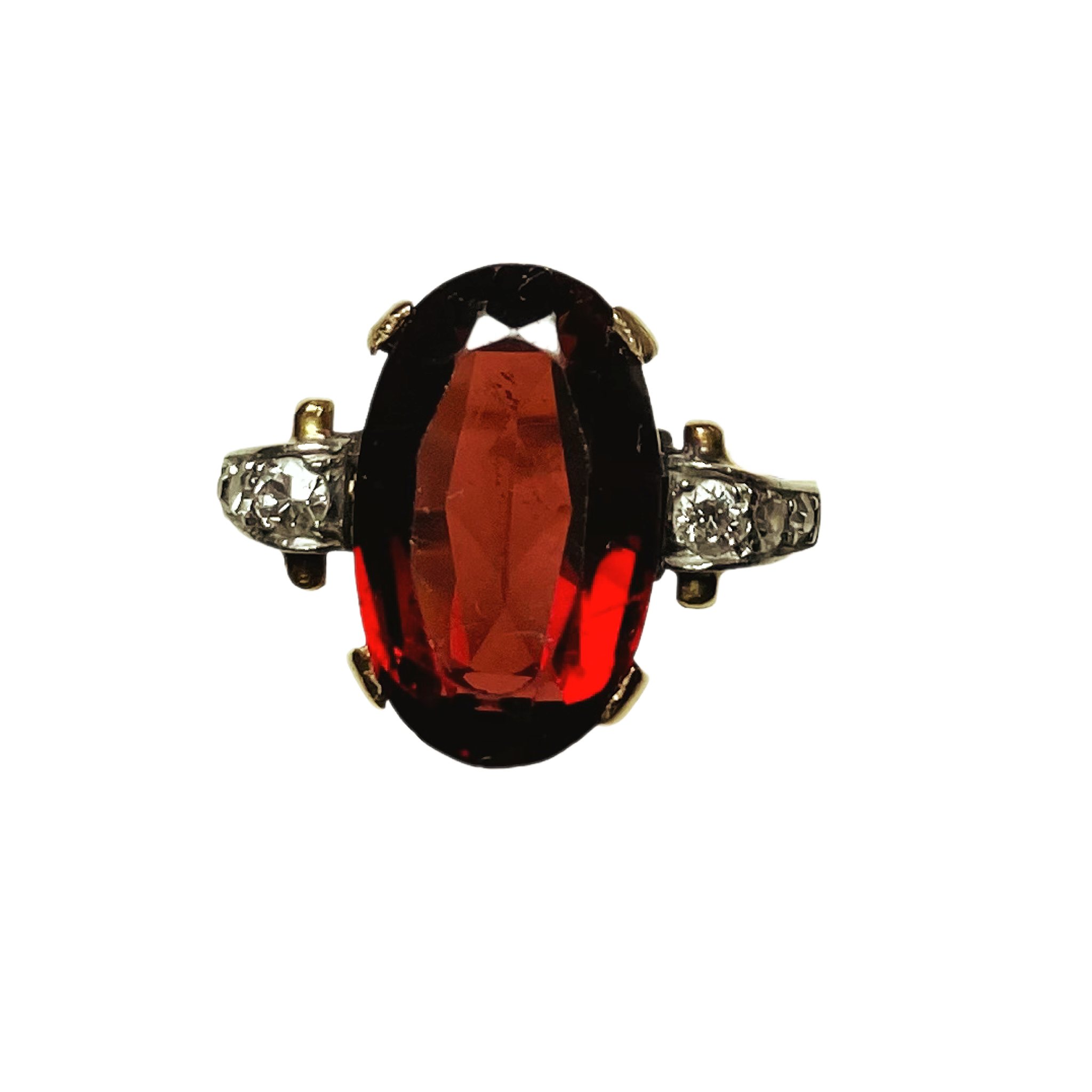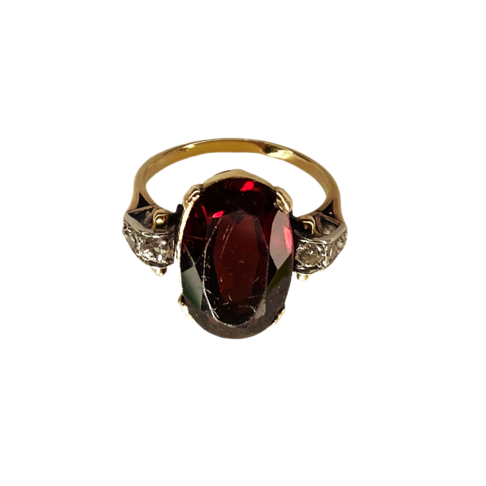 Bague or jaune et or blanc sertie d’un grand grenat et de six petits diamants