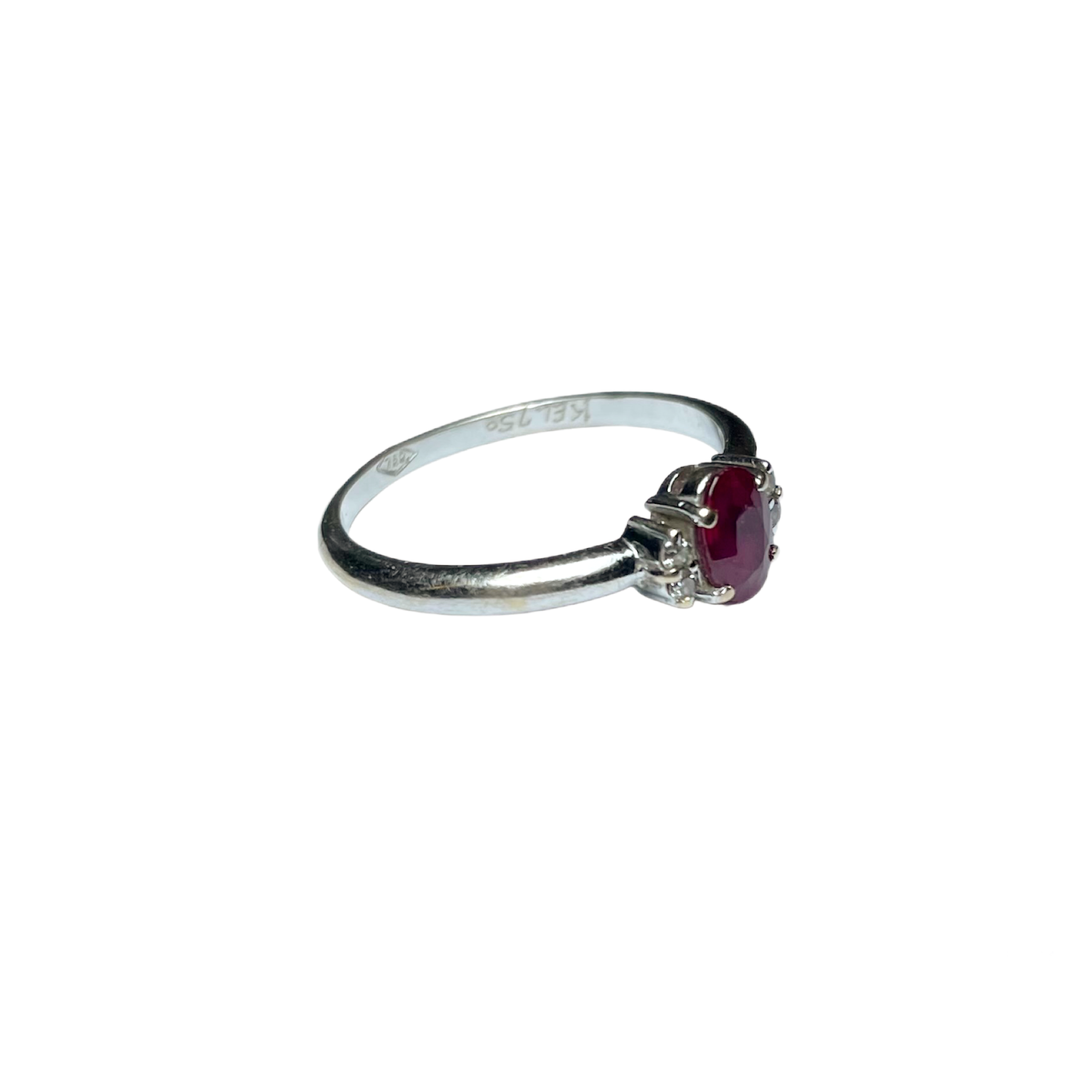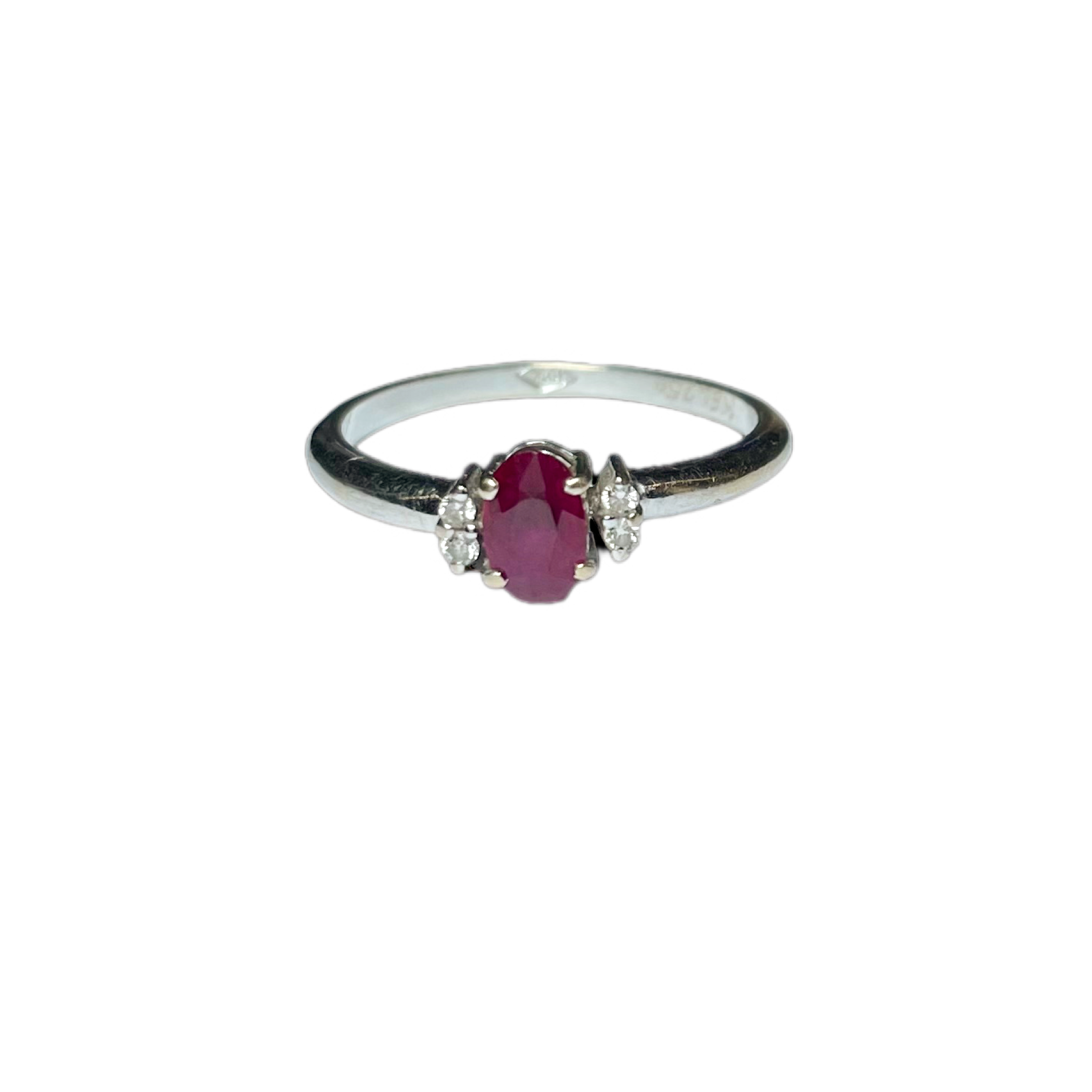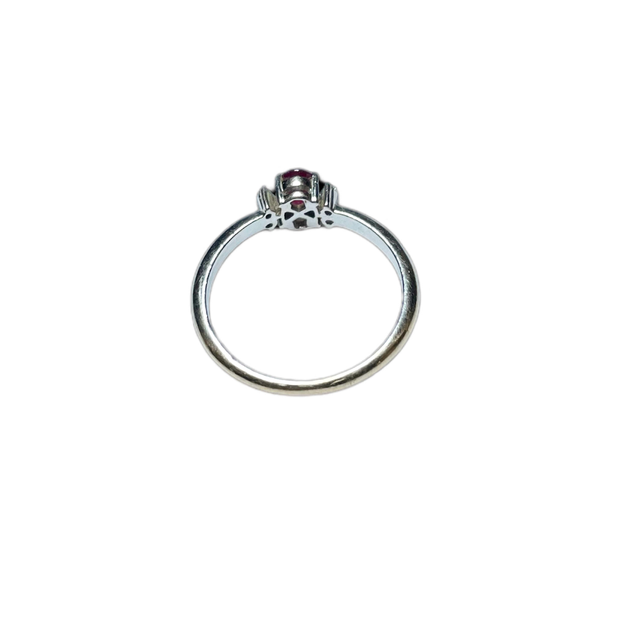 Bague sertie d’un grenat et de quatre petits diamants