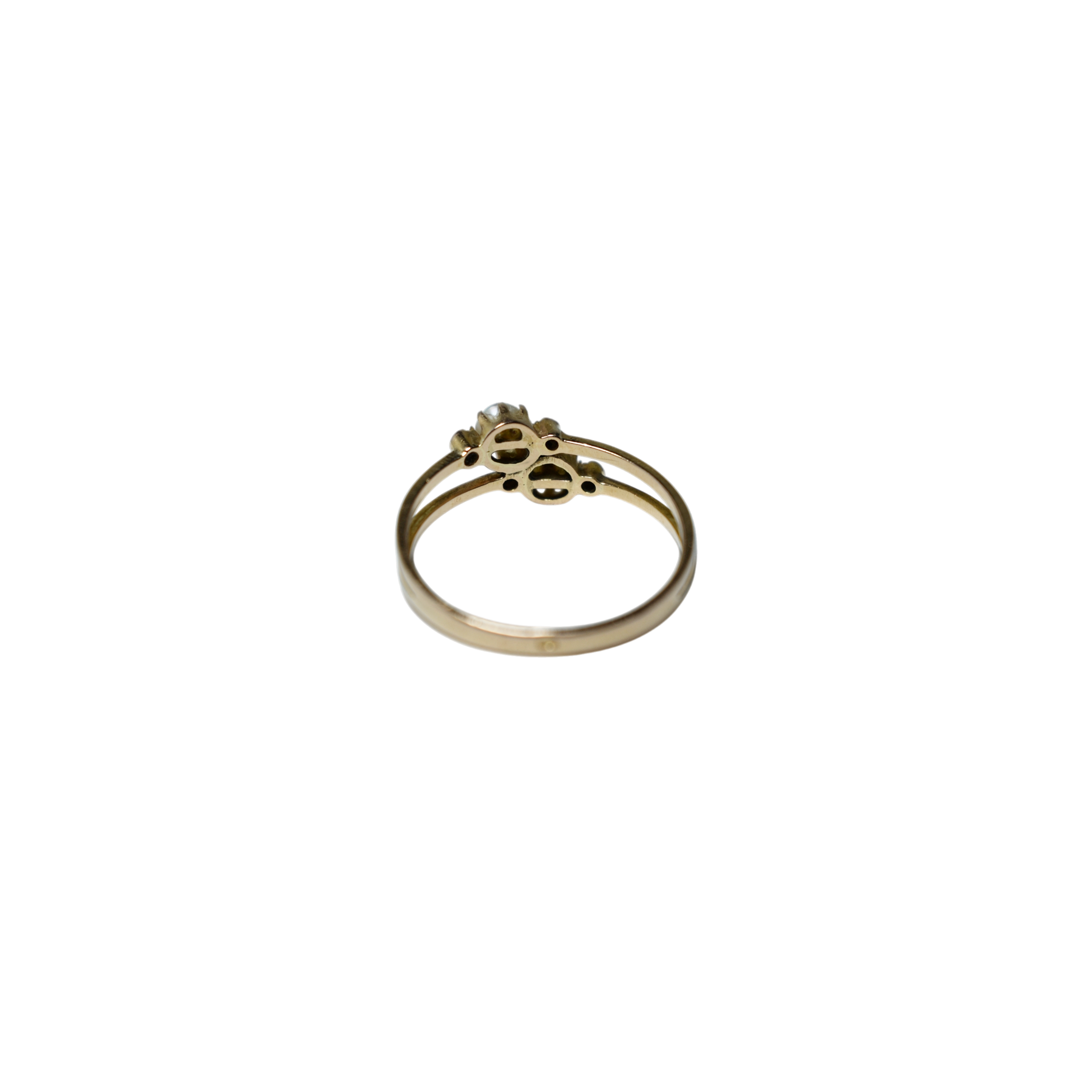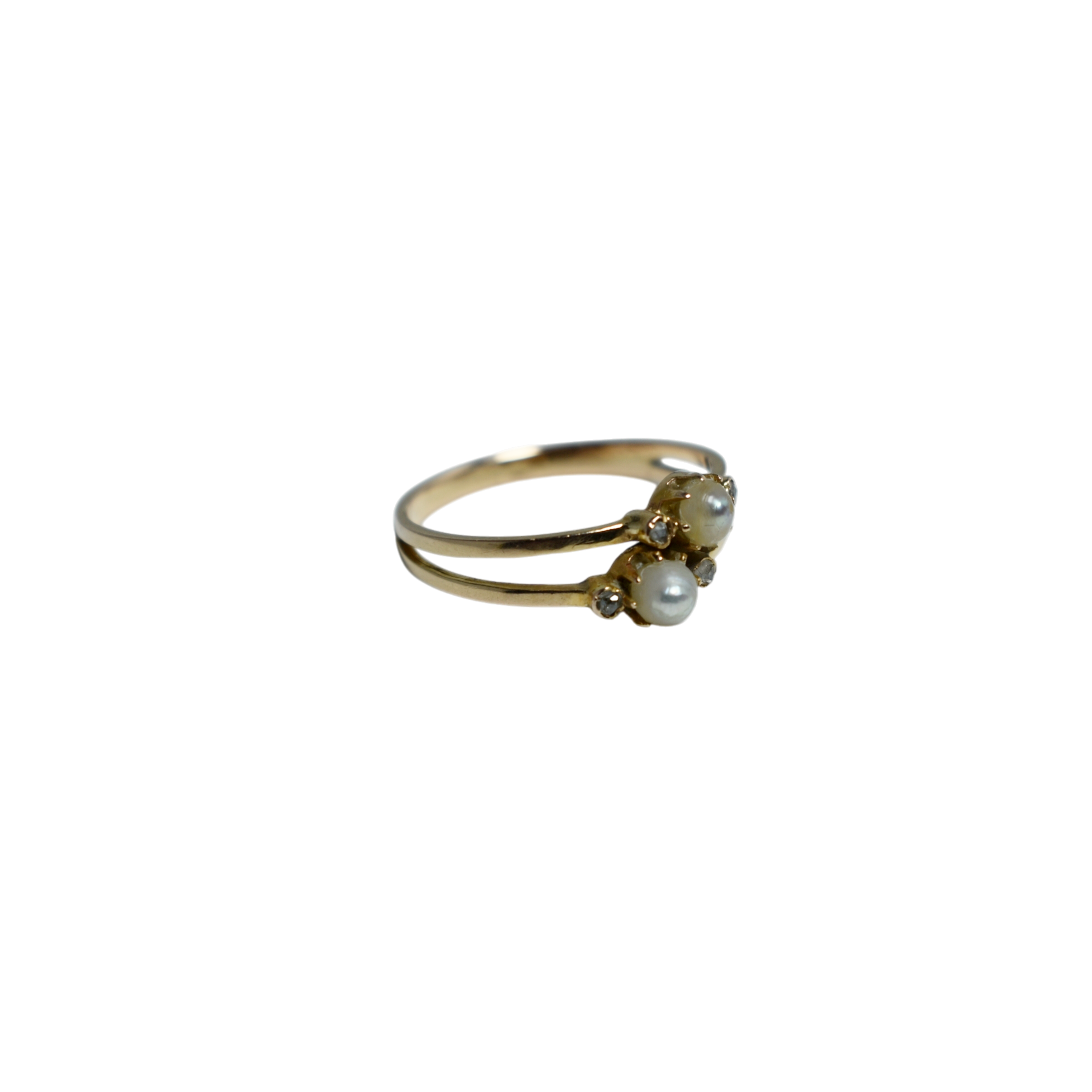 Bague Toi & Moi en or jaune, montée de deux perles et de deux brillants.