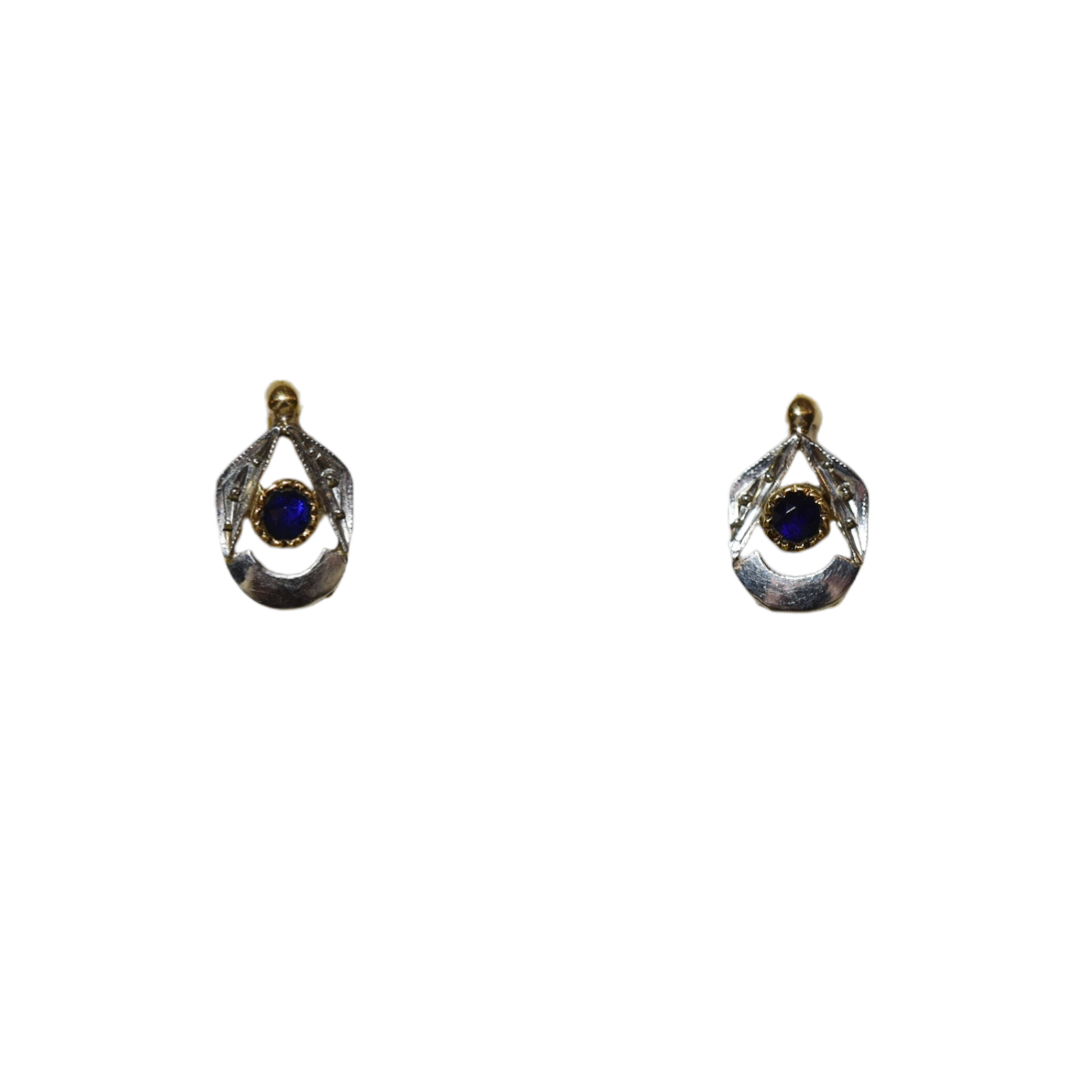 Boucles d’oreilles en or jaune et blanc serties d’un saphir