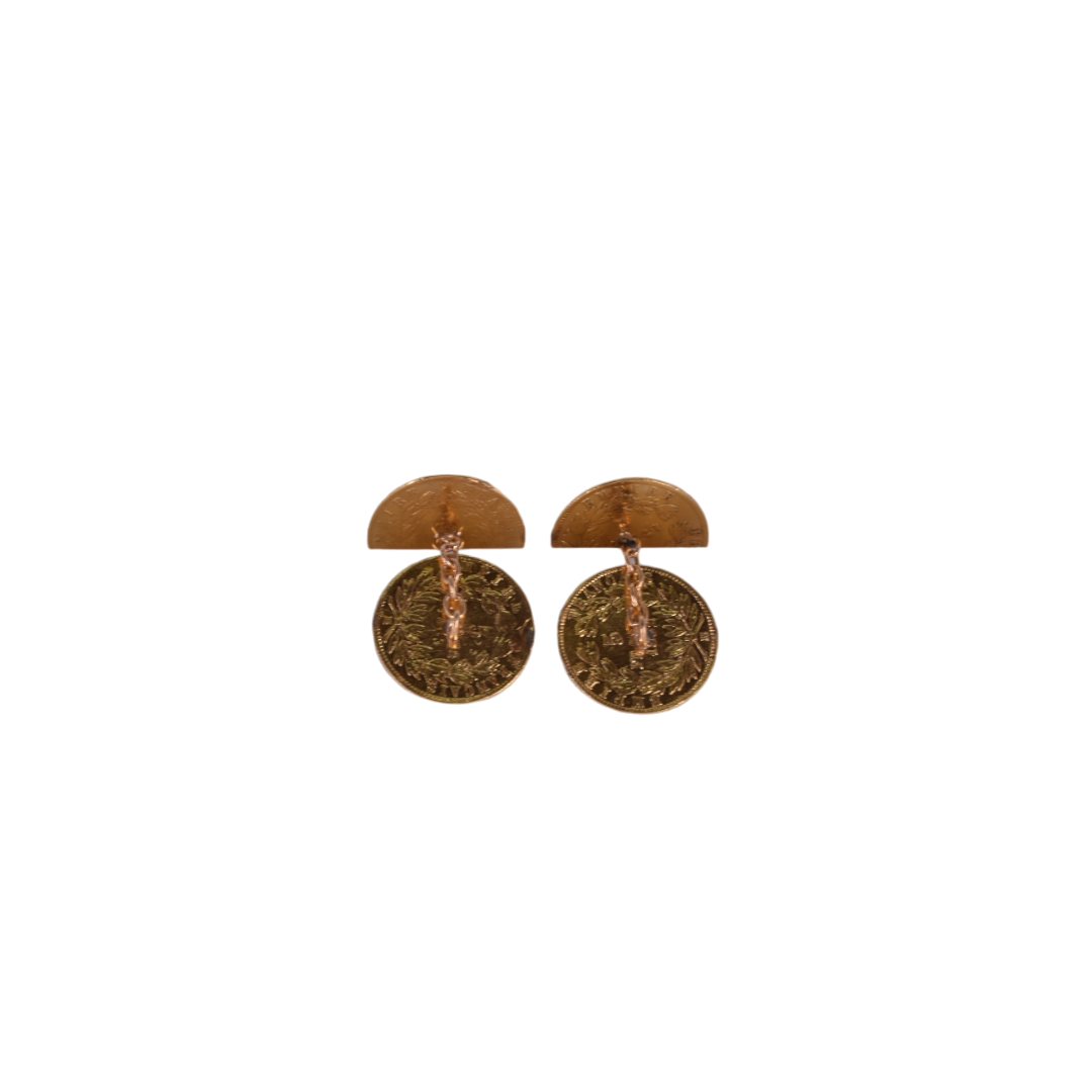 Paire de boutons de manchette en or jaune formé de 4 pièces de 5 francs or Napoléon III