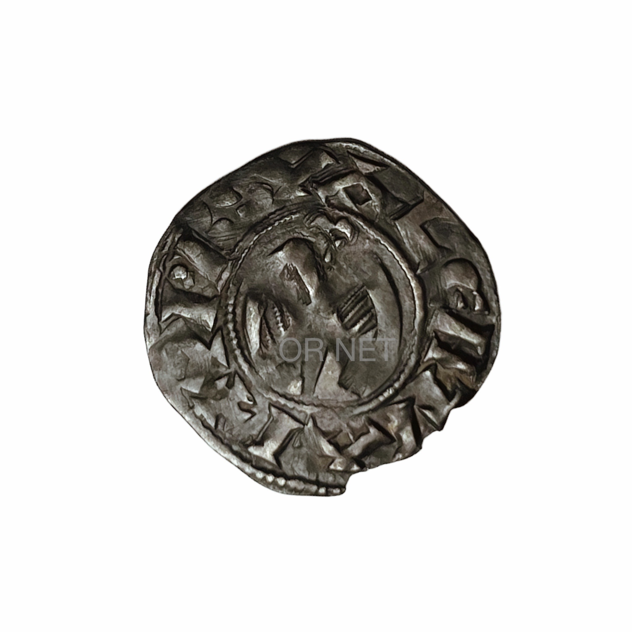 Une étude toujours en cours donne l’hypothèse que ce type de denier soit de l’épiscopat de Pons, du moins cette monnaie avec un P (pour Pons) au lieu d’un R dans la légende, notée VPBS au lieu de VRBS.