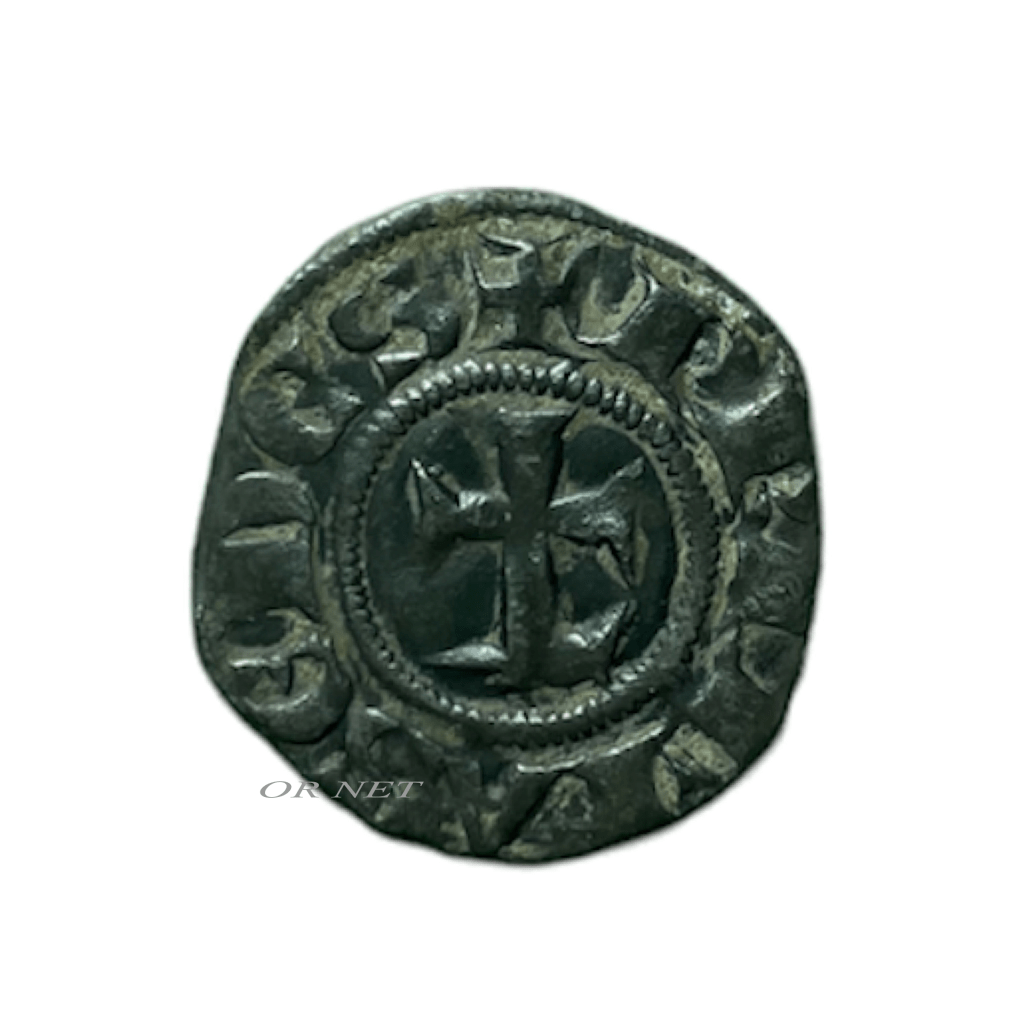 Denier de LYON, rare aux 2 points superposés, XIII ème siècle.