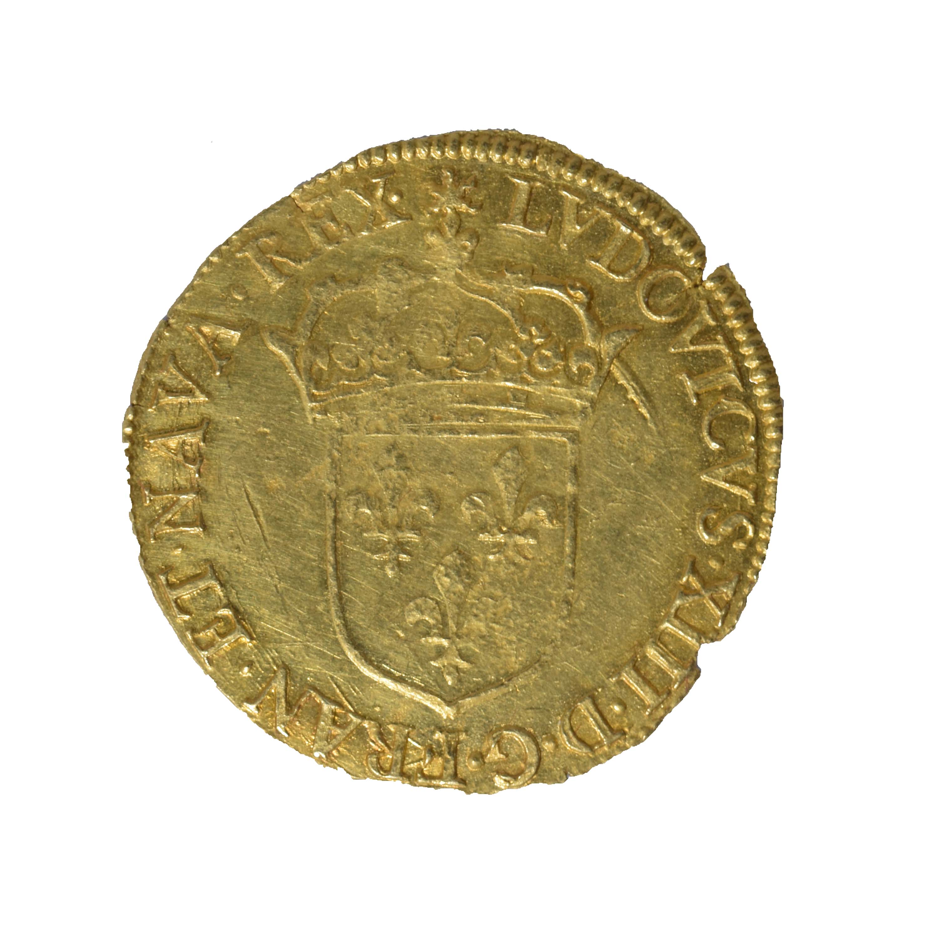 Cet écu d’or n’est pas frappé au marteau mais au moulin, soit par une grande presse appelée balance. C’est Henri II qui commença la frappe à la machine avec l’Henri d’or de son vrai nom ducat d’Henri. Cette technique ne fut pas poursuivie par Charles IX au 17 août 1561 qui reprit la frappe au marteau avec l’écu portant dorénavant un millésime.