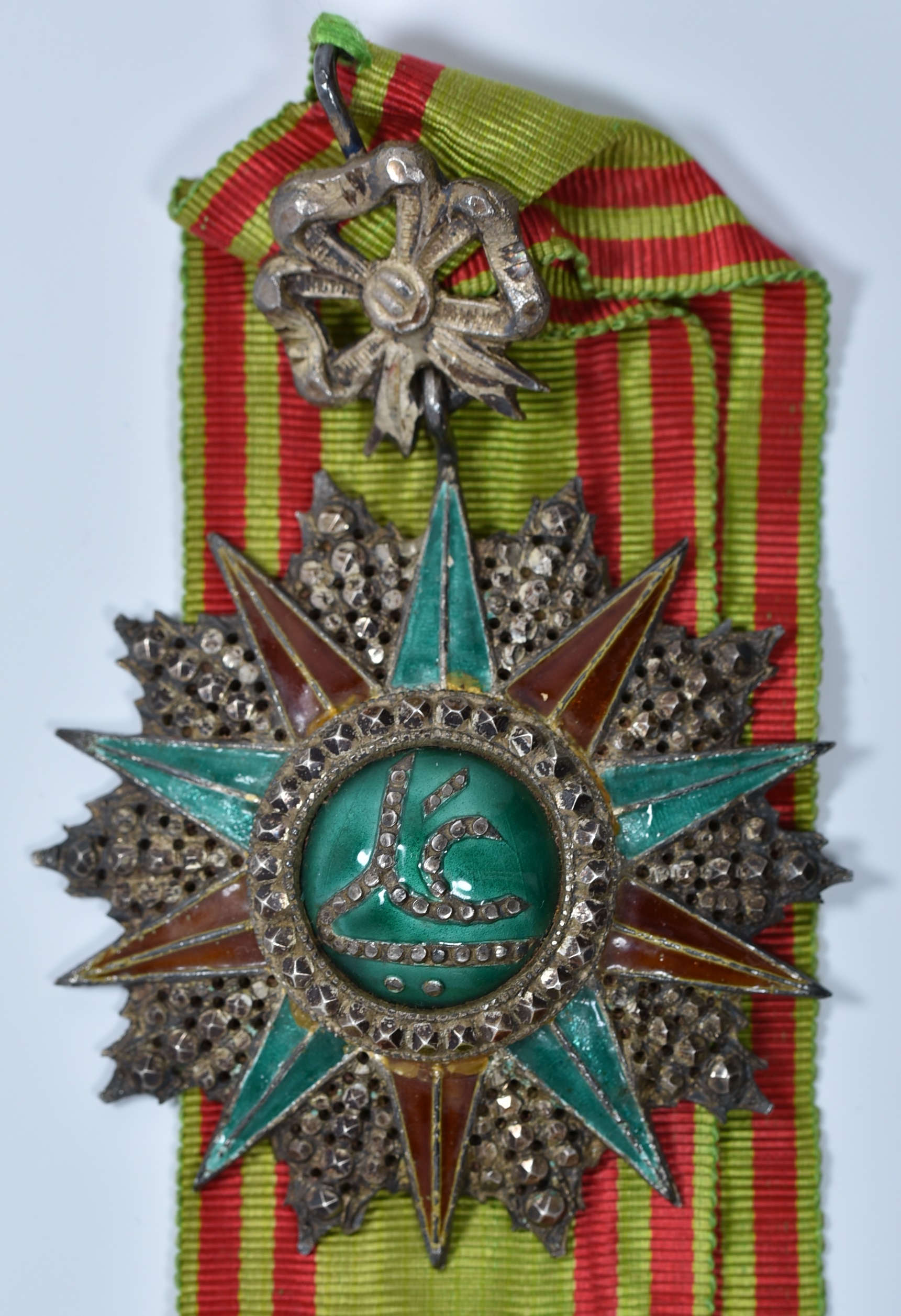 Etoile de commandeur Tunisien, ruban d’officier de l’ordre du Nicham Ifticar (ordre de la fierté), époque Bey Ali (1882-1902), 62 mm.
