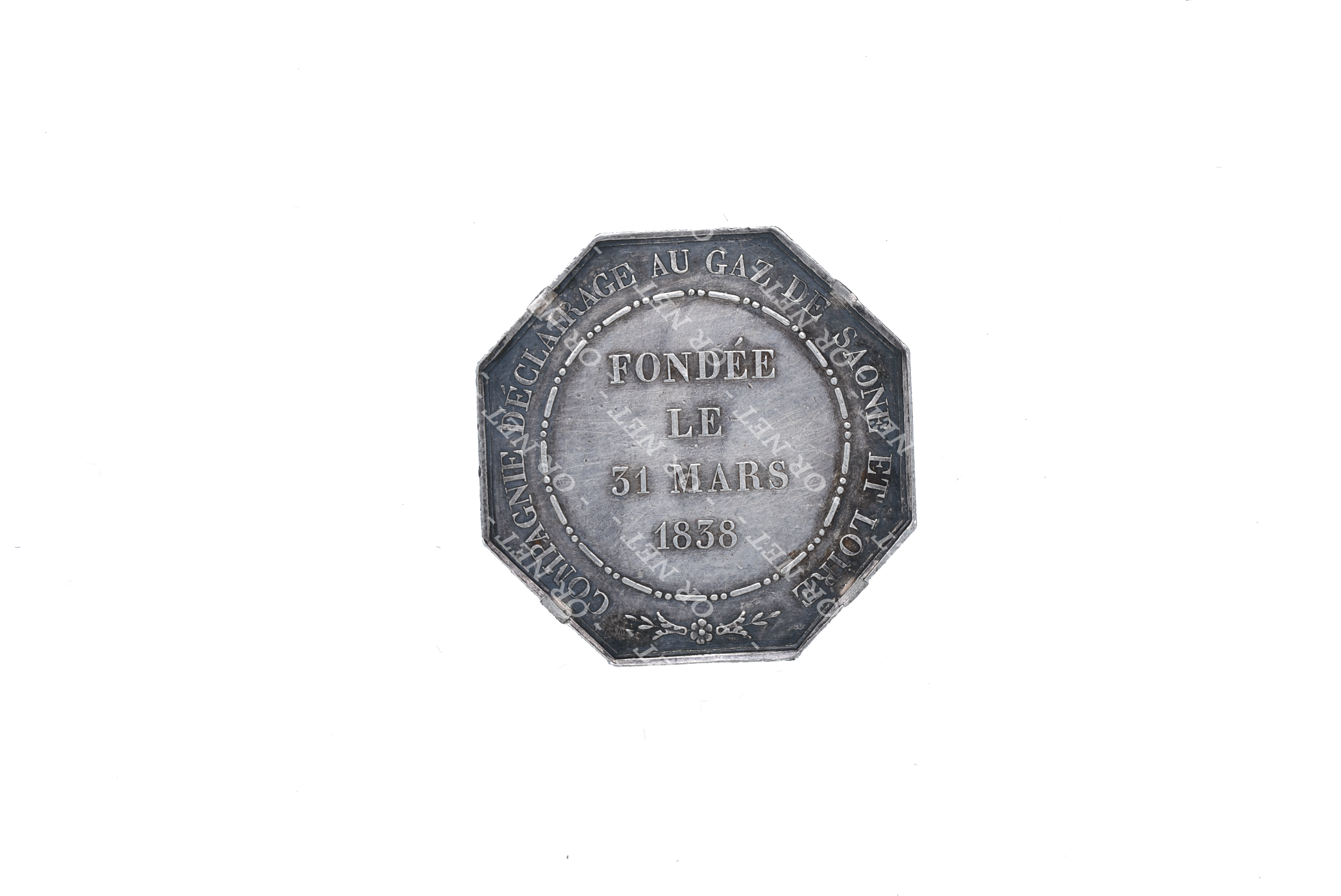 Jeton octogonal en argent de1838 de la Compagnie d’éclairage au gaz, villes de Chalon et Macon.