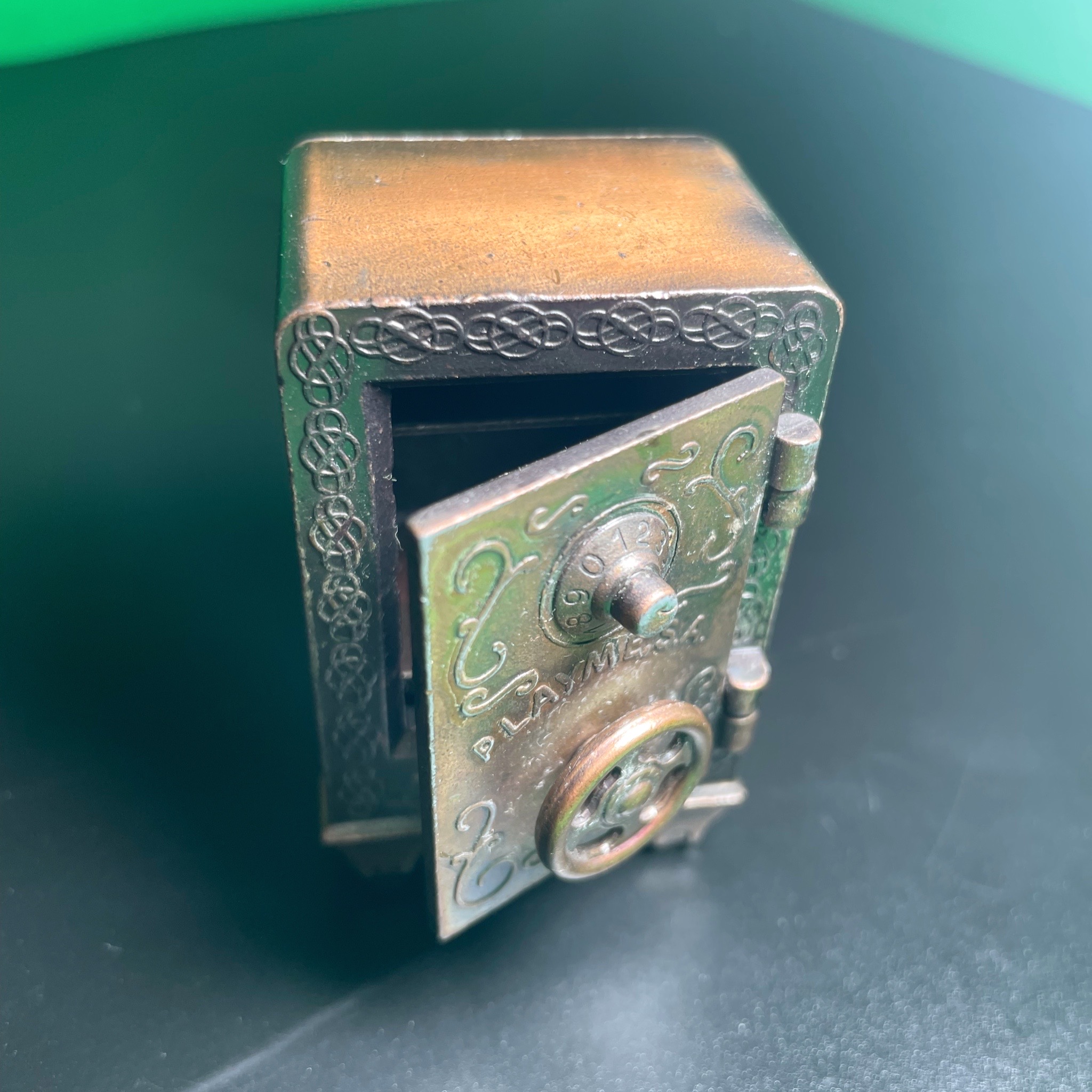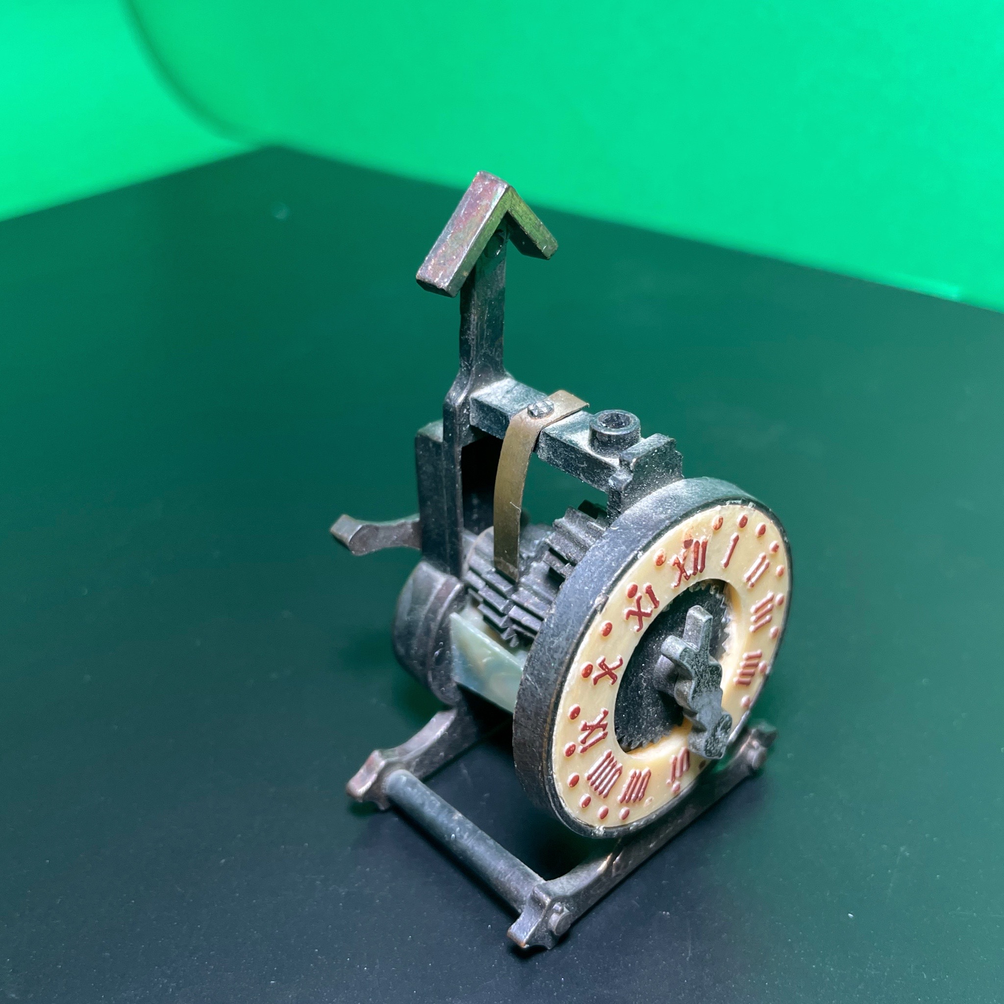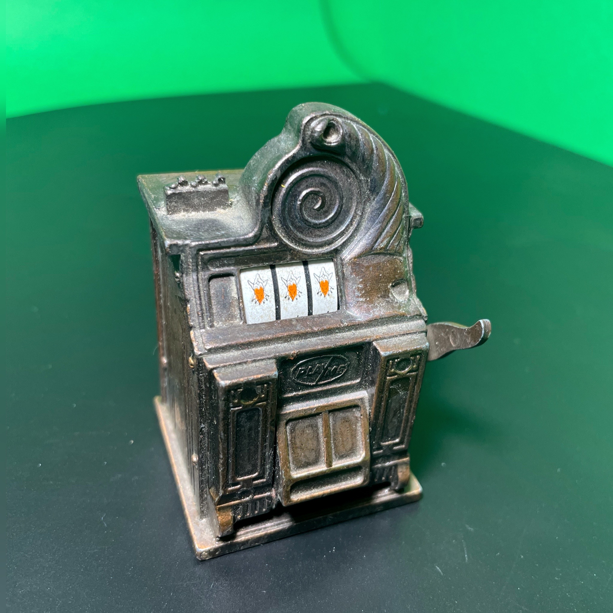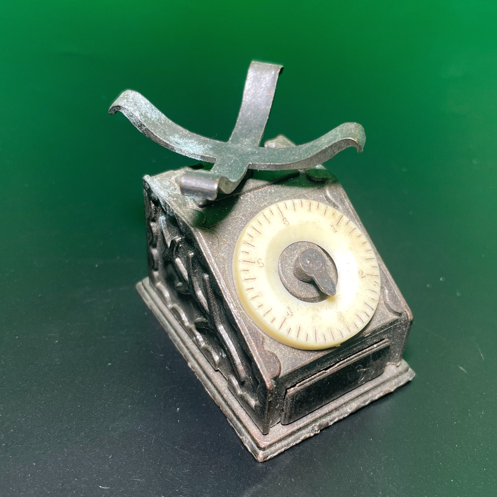 Un piano / un coffre fort / une gazinière / une balance / deux machines à sous / une horloge / un moulin à café / une machine à filer.