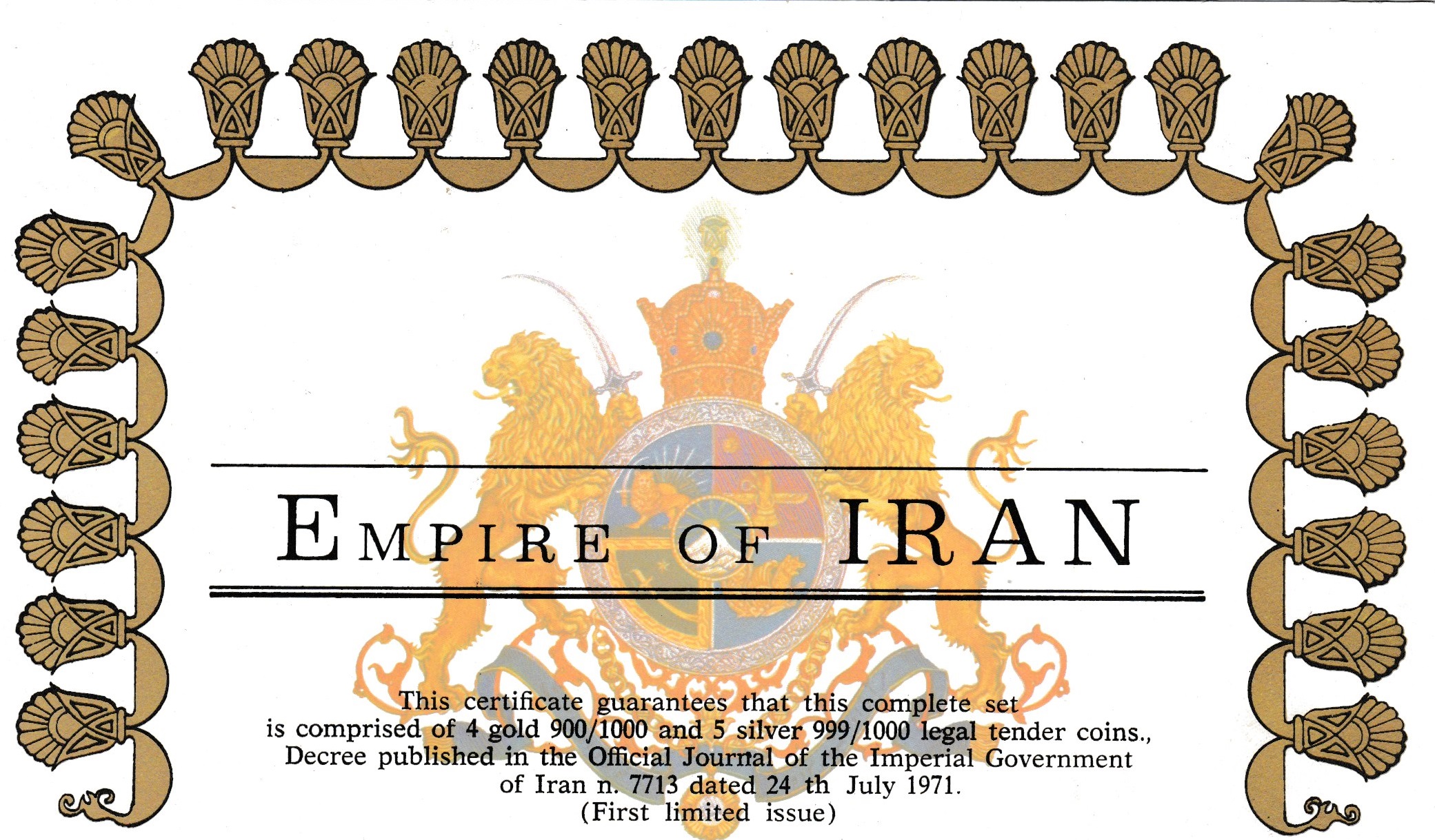 Réalisé pour les 2500e anniversaire de l’empire Perse un écrin émis seulement à 9805 exemplaires.