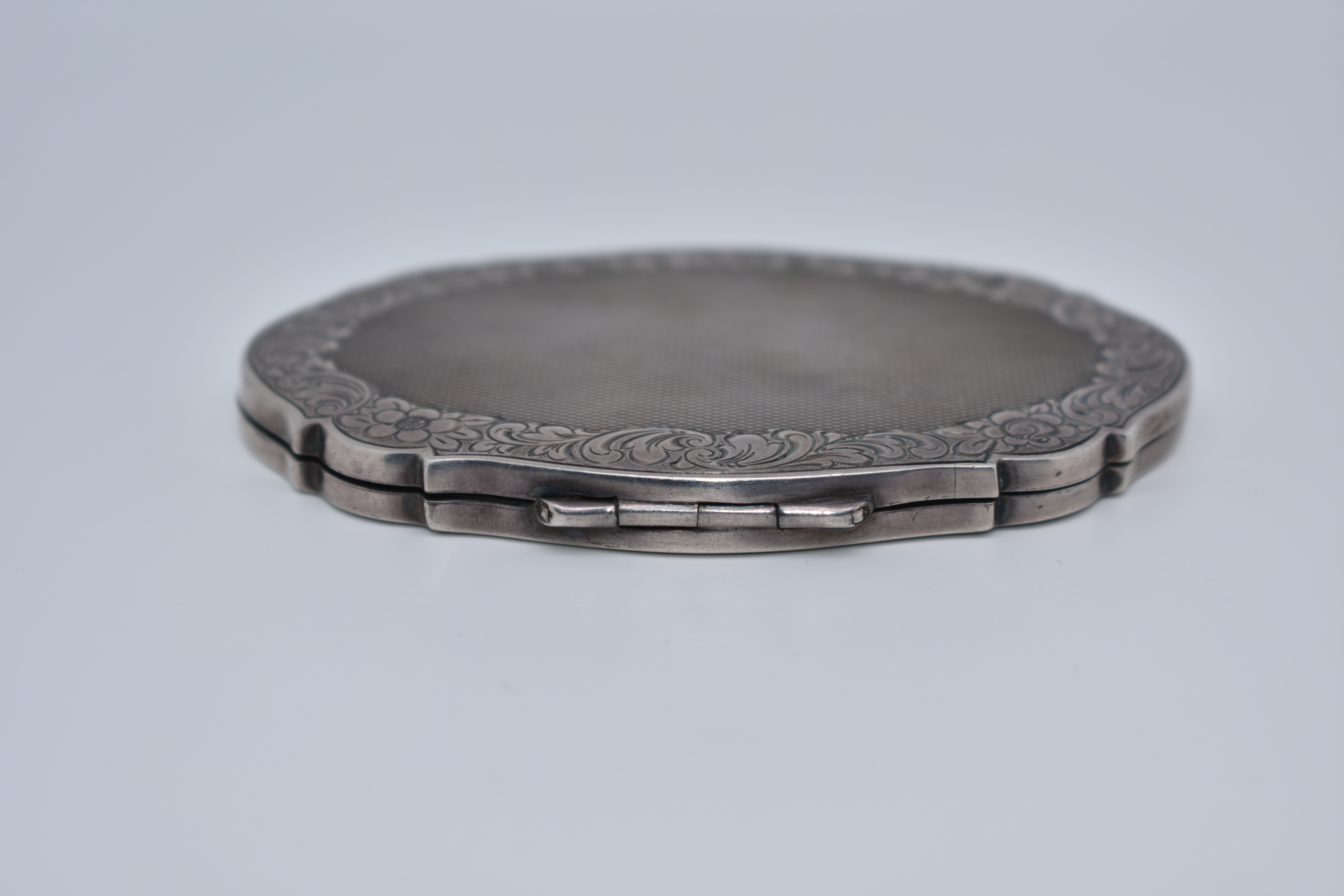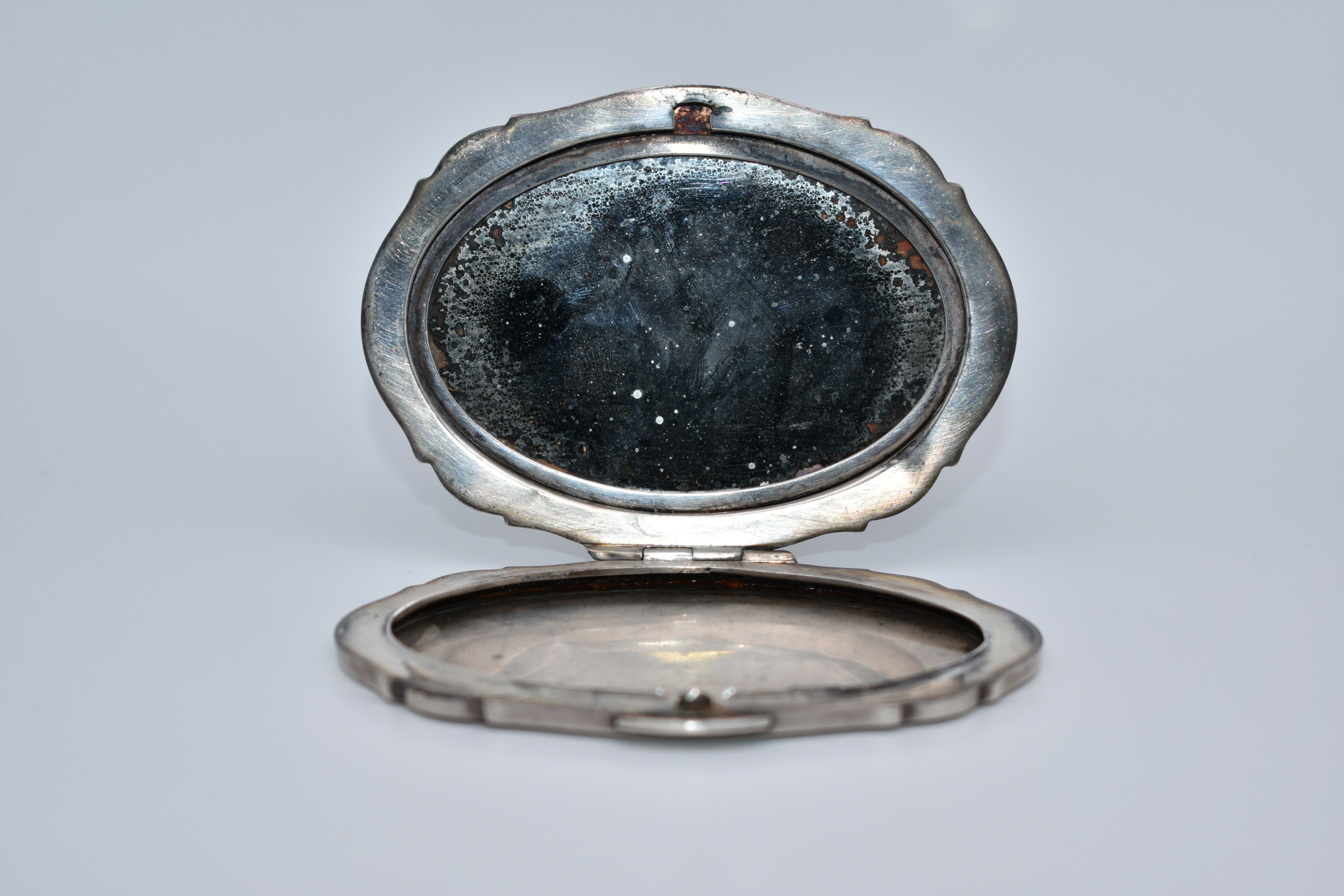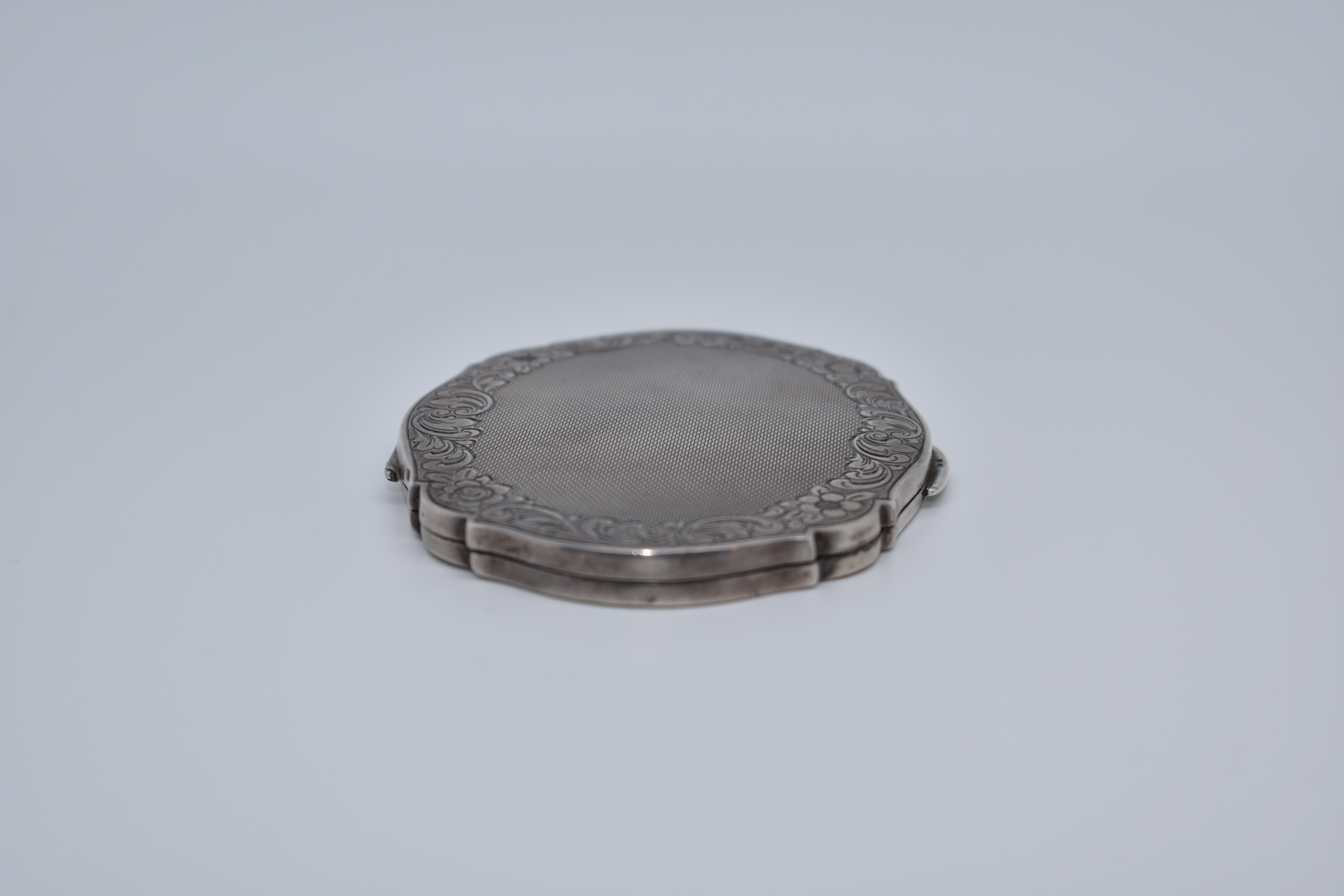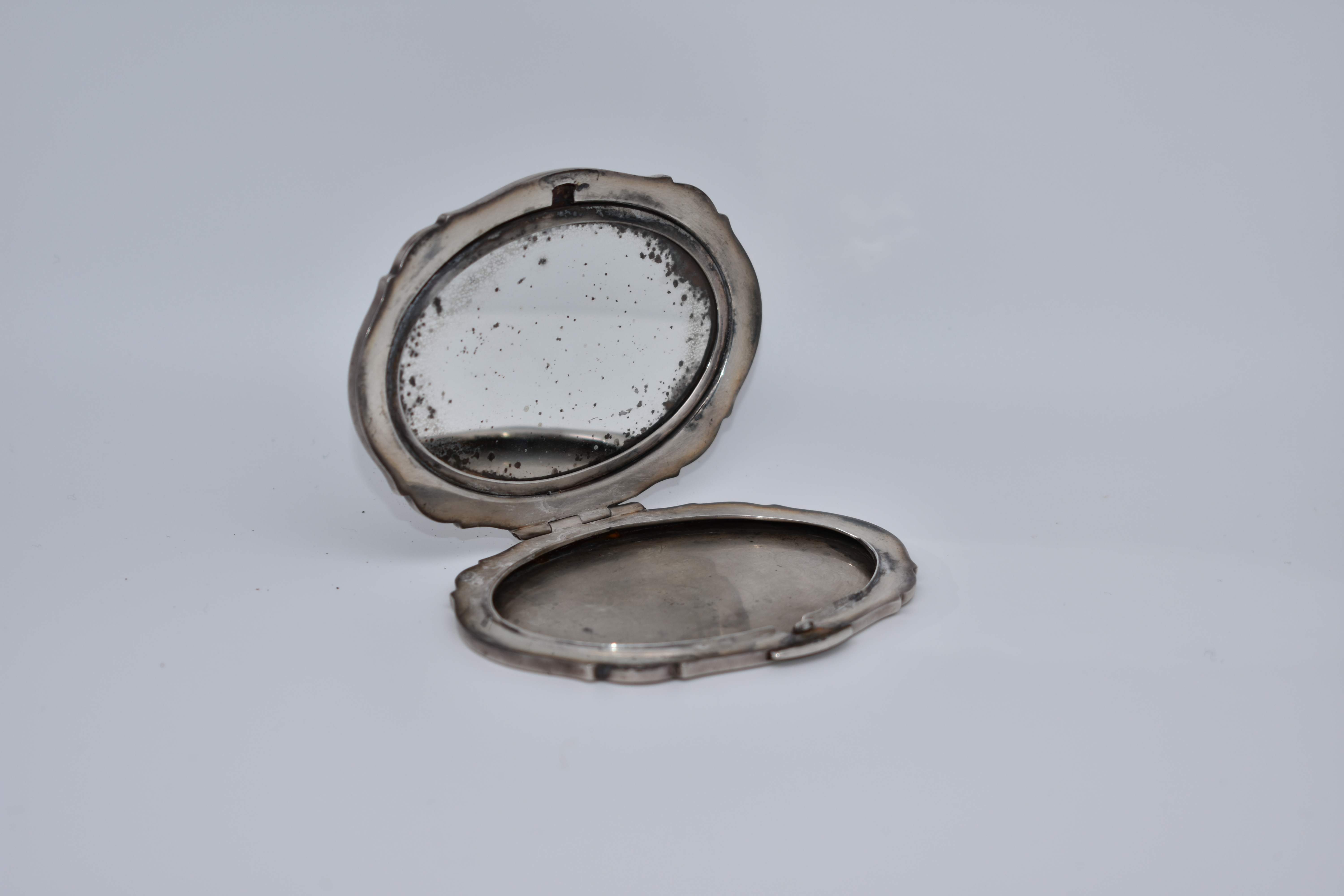 Poudrier ancien en argent sterlin 925‰ avec miroir XIXème siècle. Poids Brut : 77.7gr.